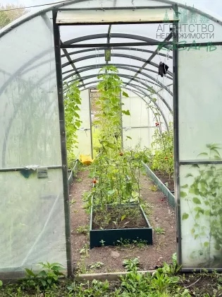 На участке плодородная почва, плодоносящие деревья, парник с насаждениями, на участке установлен автополив.