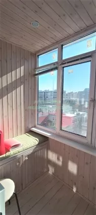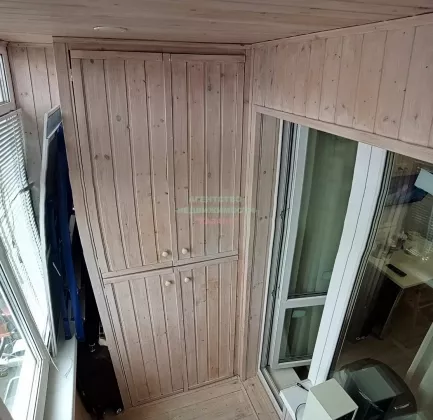 -Балкон остеклен и обшит деревом;