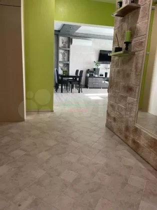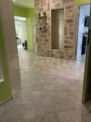 На полу положен ламинат, в холе плитка из натурального камня.