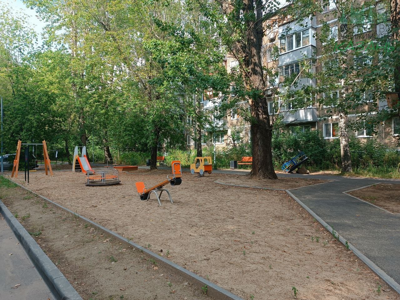 Во дворе есть новая,современная детская площадка.